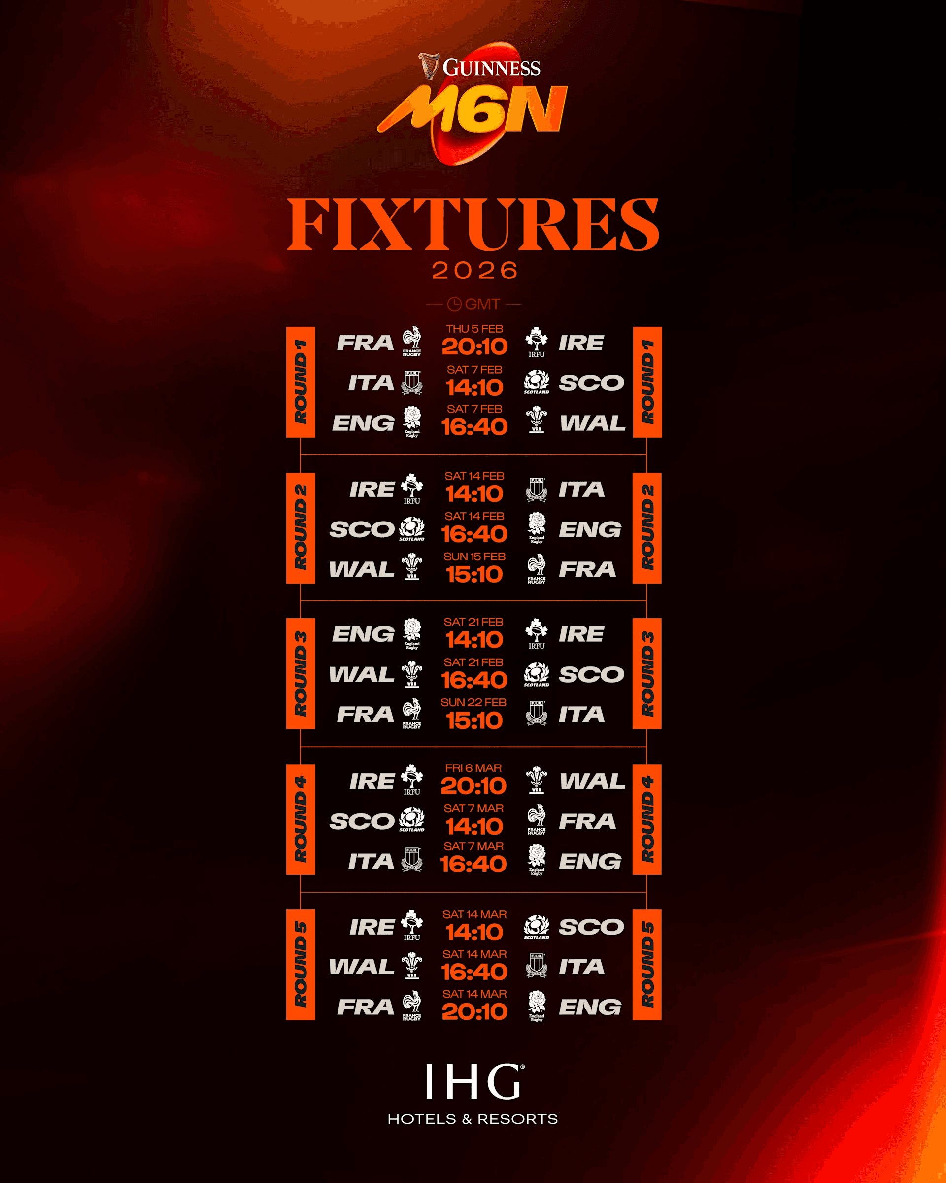 Join us on these dates to watch the Six Nations!