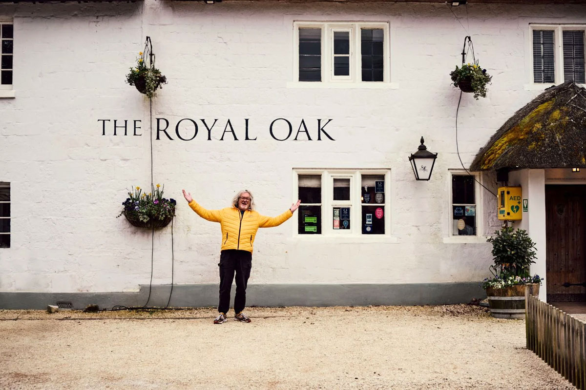 Tucked away in the quiet Wiltshire village of Swallowcliffe, near Salisbury, stands The Royal Oak — a handsome, Grade II-listed 18th-century inn that James now part-owns (he famously described it as buying "half a pub"). He stepped in during the pandemic, partly browbeaten into it by circumstance, but mostly because he realised that without his intervention, there'd be no pub within walking distance of his nearby home. And in James May's world, a life without a local pint is a life that's become, in his words, "meaningless".